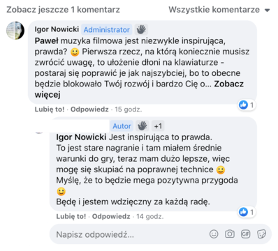 Moim celem jest nauczyć jak największą ilość osób, grać z przyjemnością na klawiszach :) Nie przygotuje Cię do konkursu Chopinowskiego ale sprawię, że będziesz cieszył się grą na klawiszach czy podczas komponowania muzyki rozrywkowej.